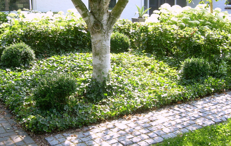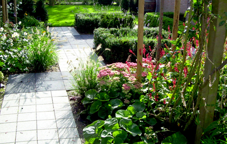 De beplanting moet passen bij het huis en de gekozen stijl. Bomen zijn onmisbaar omdat ze voor schaduw zorgen, en een mooi licht/schaduw patroon geven. Ook geven ze diepte aan een tuin, waardoor deze groter lijkt.