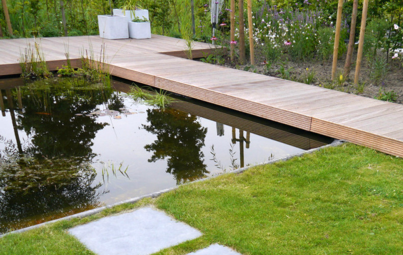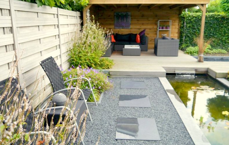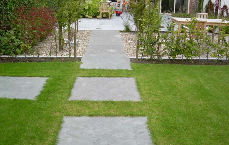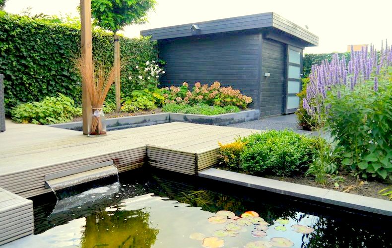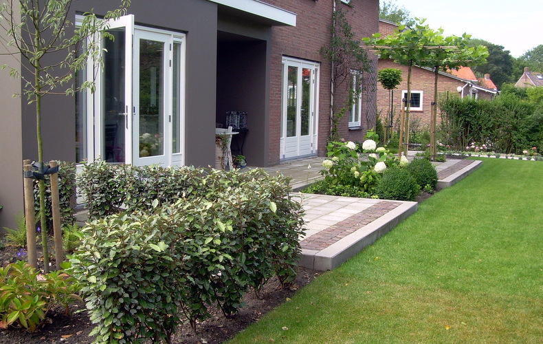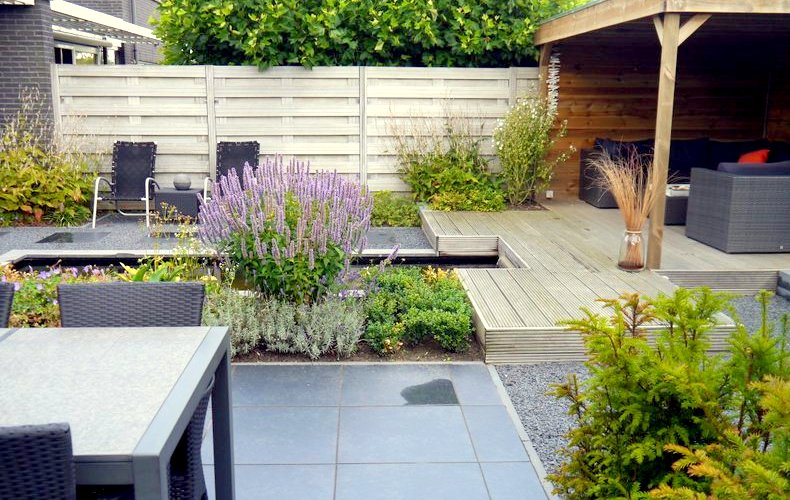Strakke lijnen (die kunnen zowel recht als organisch zijn!) en grote vlakken met een beperkt aantal plantensoorten horen bij een moderne tuin. Stoere materialen zoals hout, (natuur-) steen, metalen roosters en grote tegels bepalen de sfeer. Losse bladvormen zoals bamboe en siergrassen doen het goed in een moderne tuin, gecombineerd met planten met duidelijke bladvormen die voor contrast zorgen.